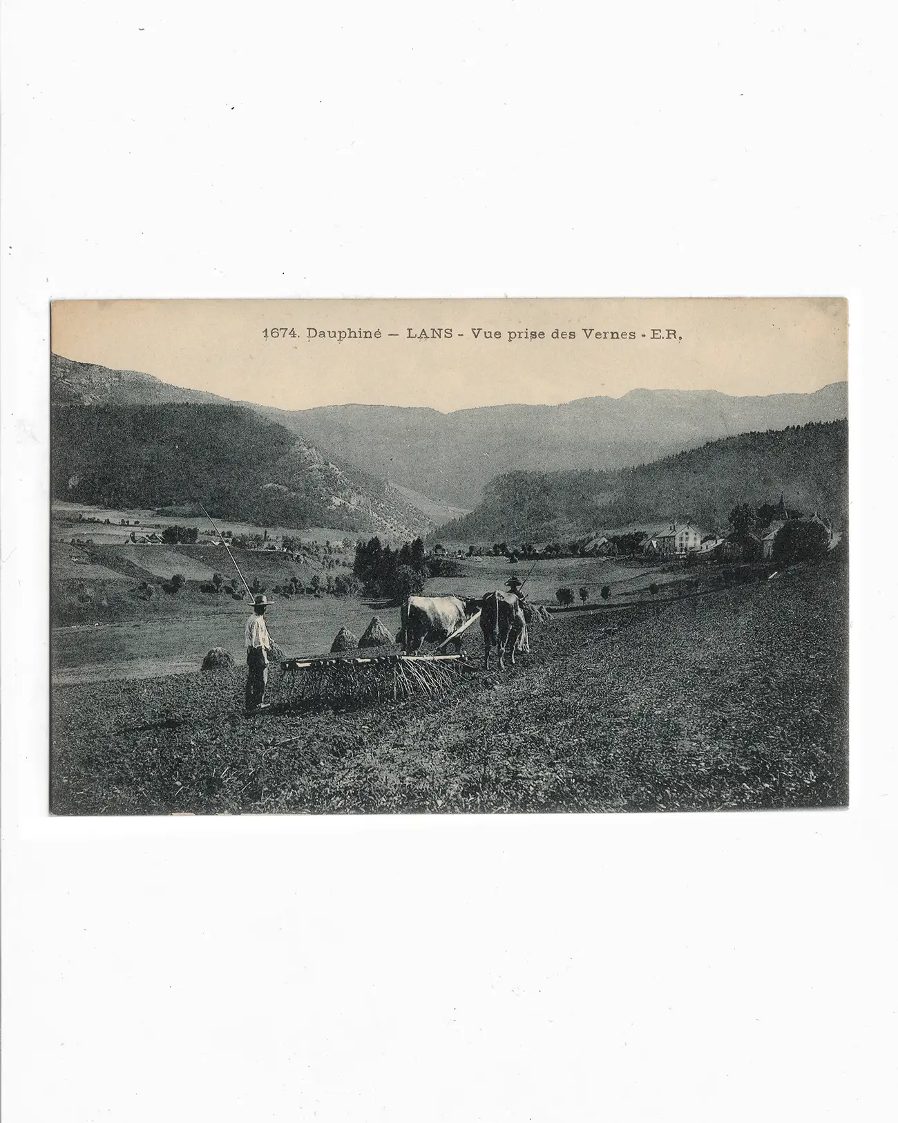 | OB-PC001 | Lans (Lans-en-Vercors) | Fenaisons, domestication, travaux agricole | Carte Postale | Papier | c. 1913 | https://www.douillet.com/objet/carte-postale-lans/ | https://www.douillet.com/wp-content/uploads/2025/06/Alpine-Postcard-Maison-Douillet-16.webp |