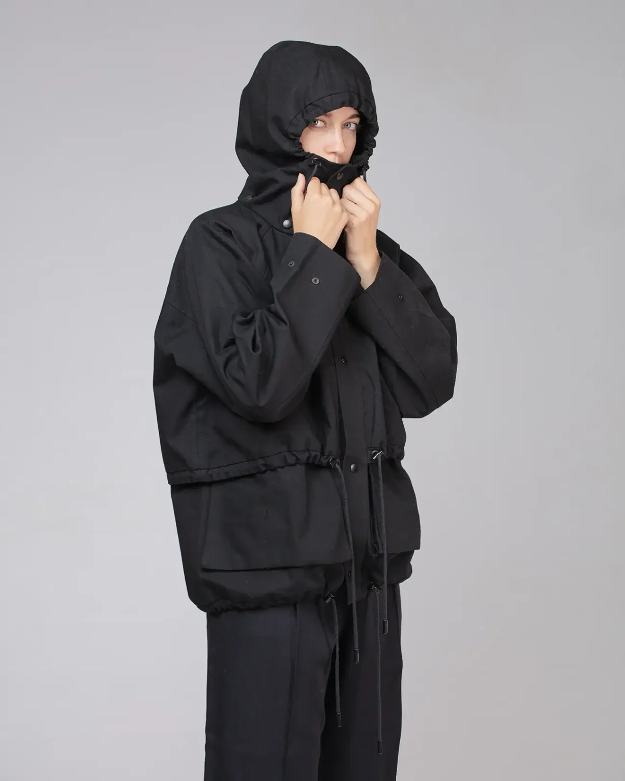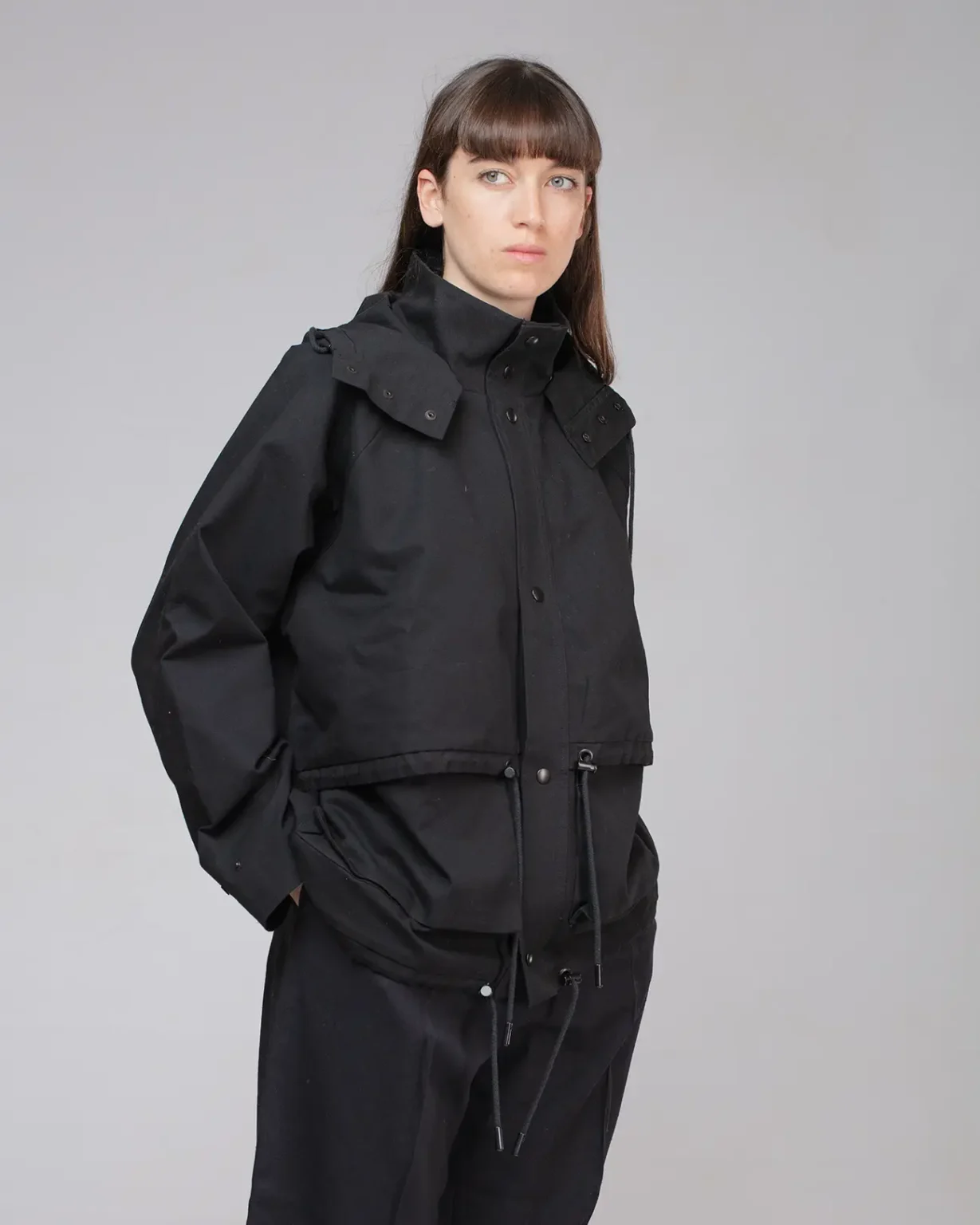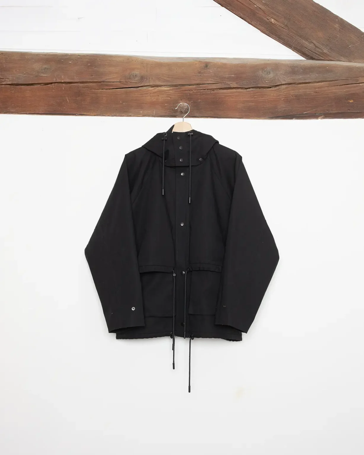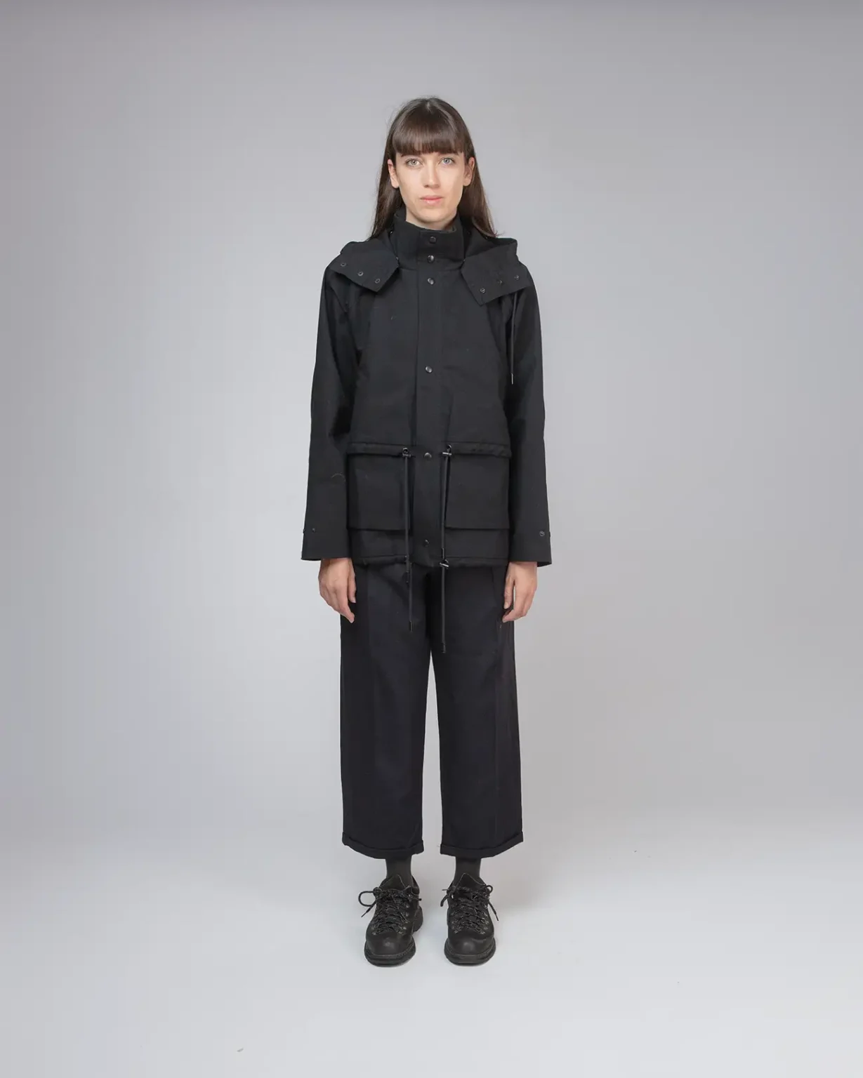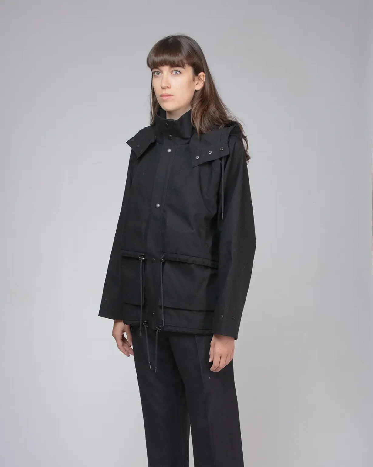 Coated organic cotton canvas, medium weight, structured.