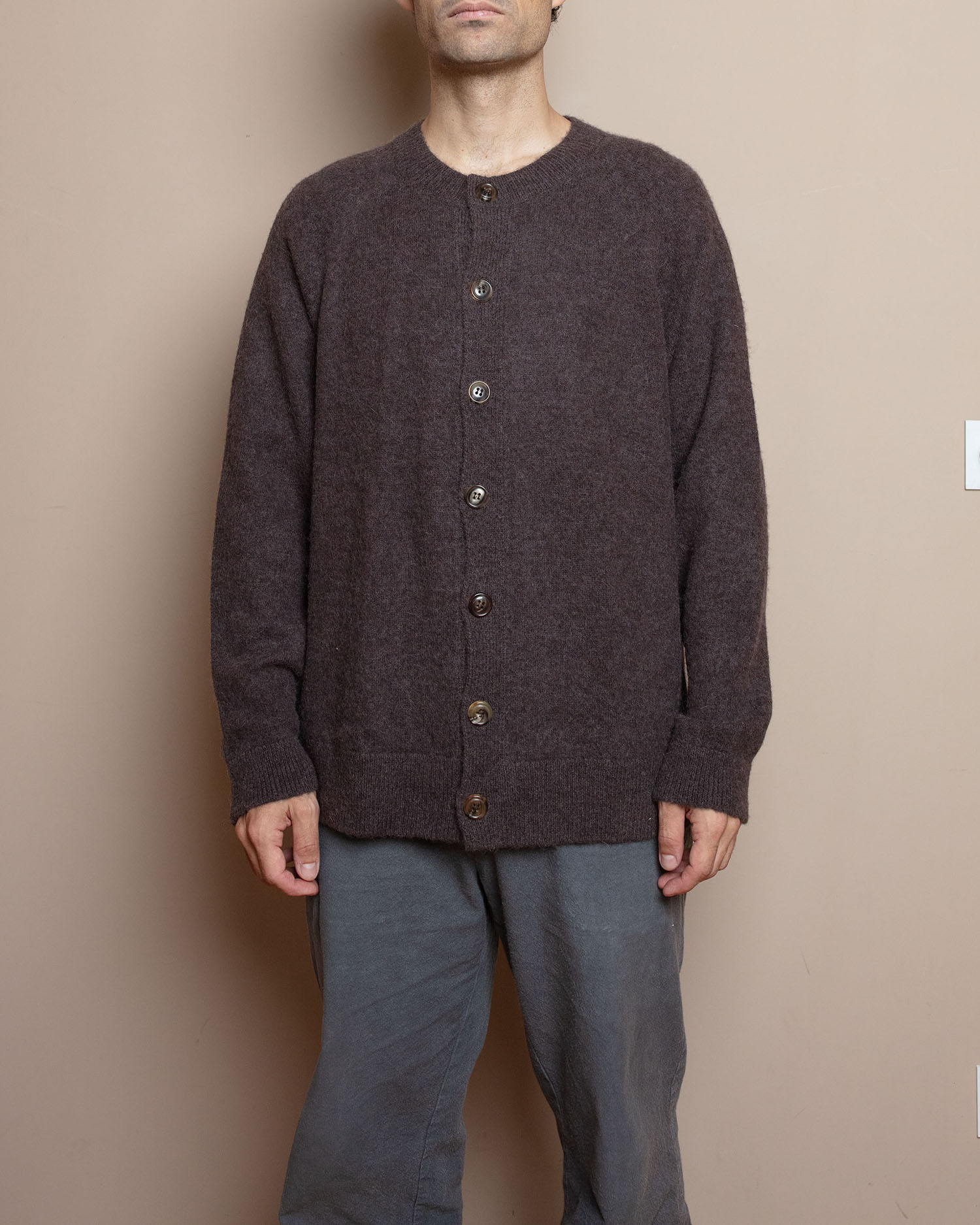 . Design : Col rond, maille fluffy et voluptueuse, fully fashionned, bouton corne