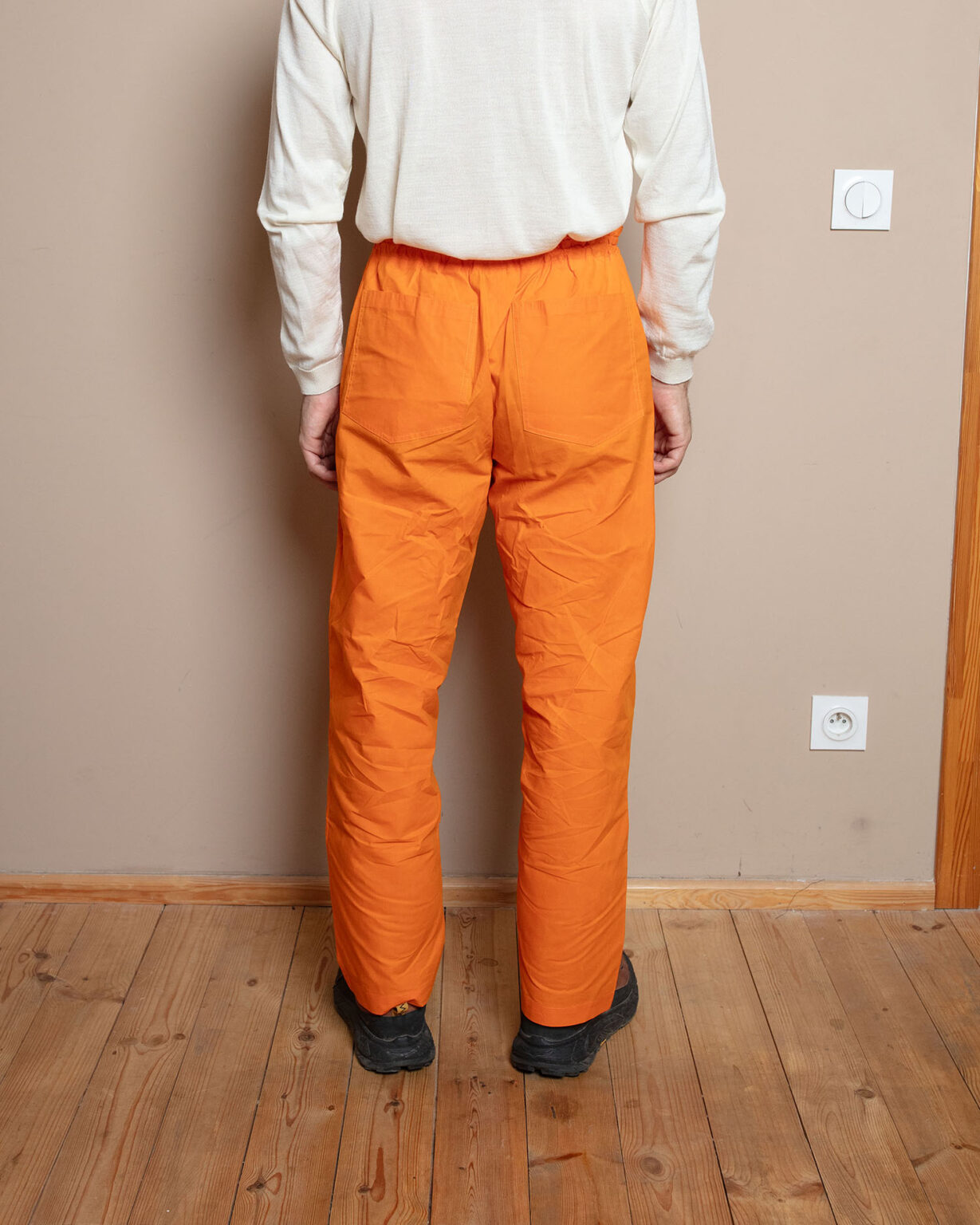 . Design : Taille élastique, pate de boutonnage caché, lien de serrage, poches latérales, poches plaquées arrières,