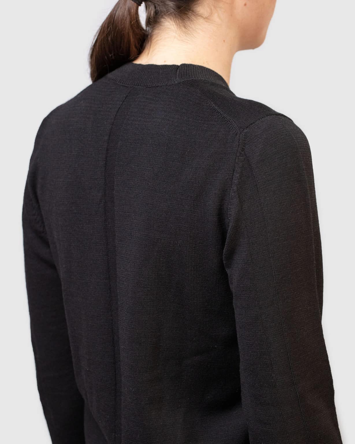 . Coupe ajustée . Col rond plaqué . Détail de maille contrastante dos et manches